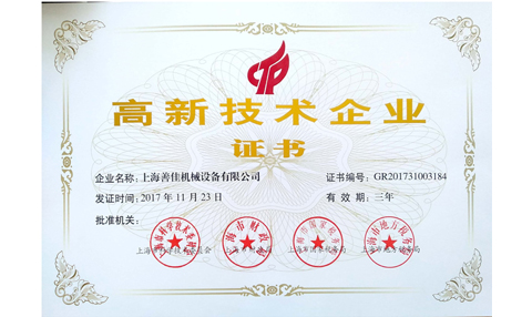 2017年11月23日,經(jīng)上海市科學技術(shù)委員會、上海市財政局、上海市國家稅務(wù)局、上海市地方稅務(wù)局批準我司第二次榮獲高新技術(shù)企業(yè)證書。