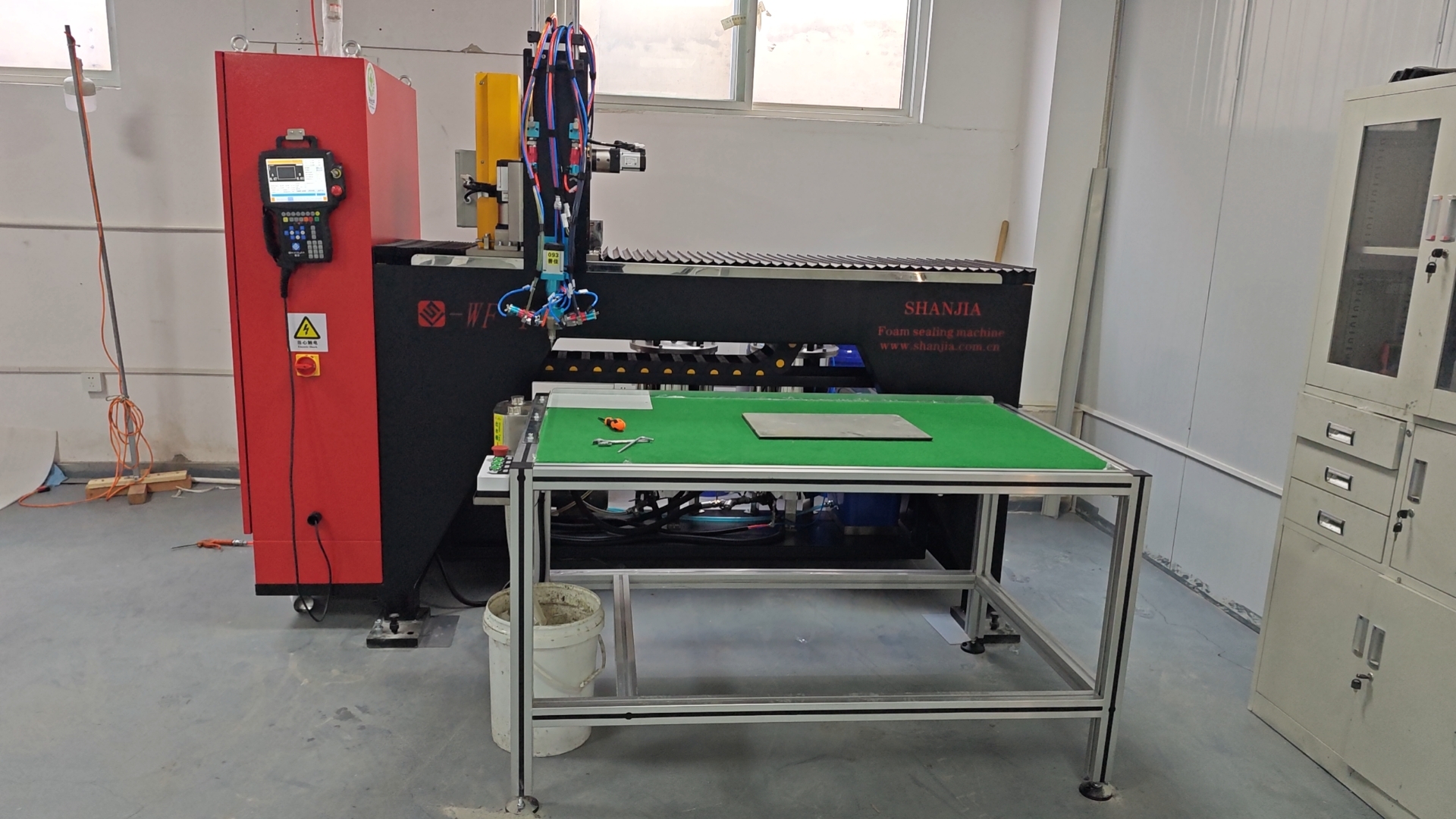 機柜行業(yè)的防水密封作業(yè)主要使用的自動化設備是善佳機械常量密封點膠機,這款設備加工膠條的范圍在5mm-30mm之間,完全可以滿足各類機柜的需要。